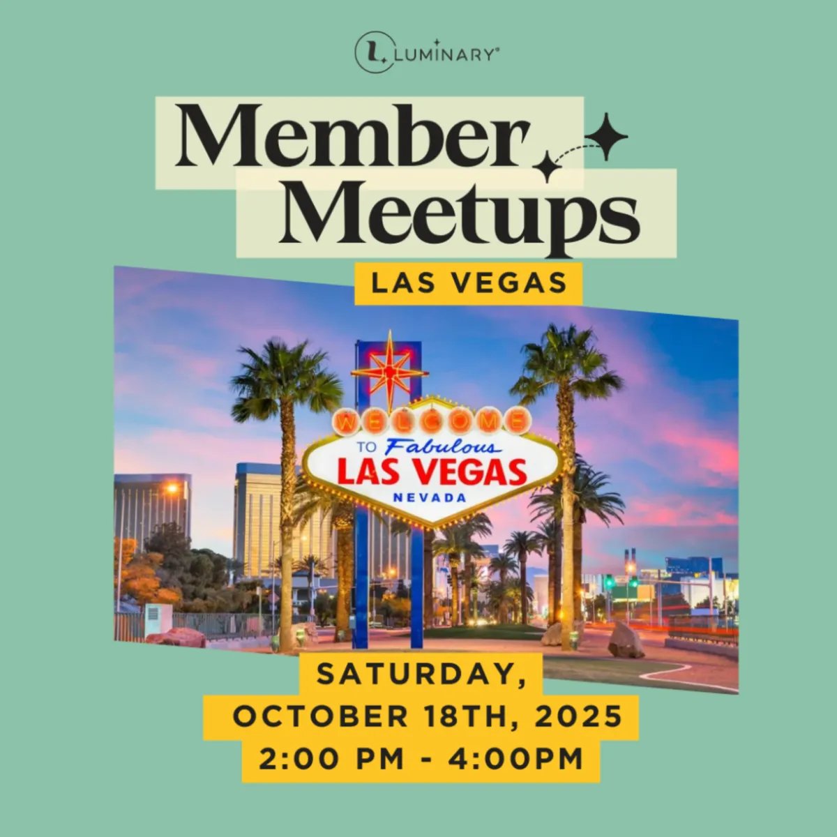 Our roots are in Las Vegas, but we're already partnering with national networks like Luminary to bring high-impact events here. By joining now, you’ll get first notice as those opportunities expand.